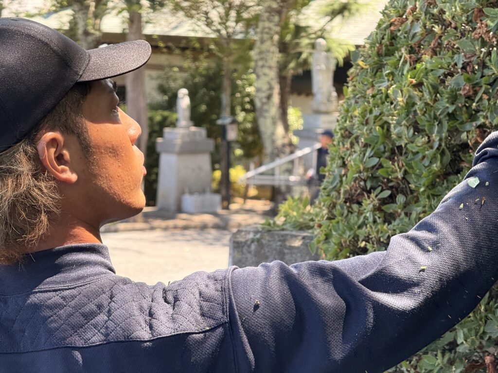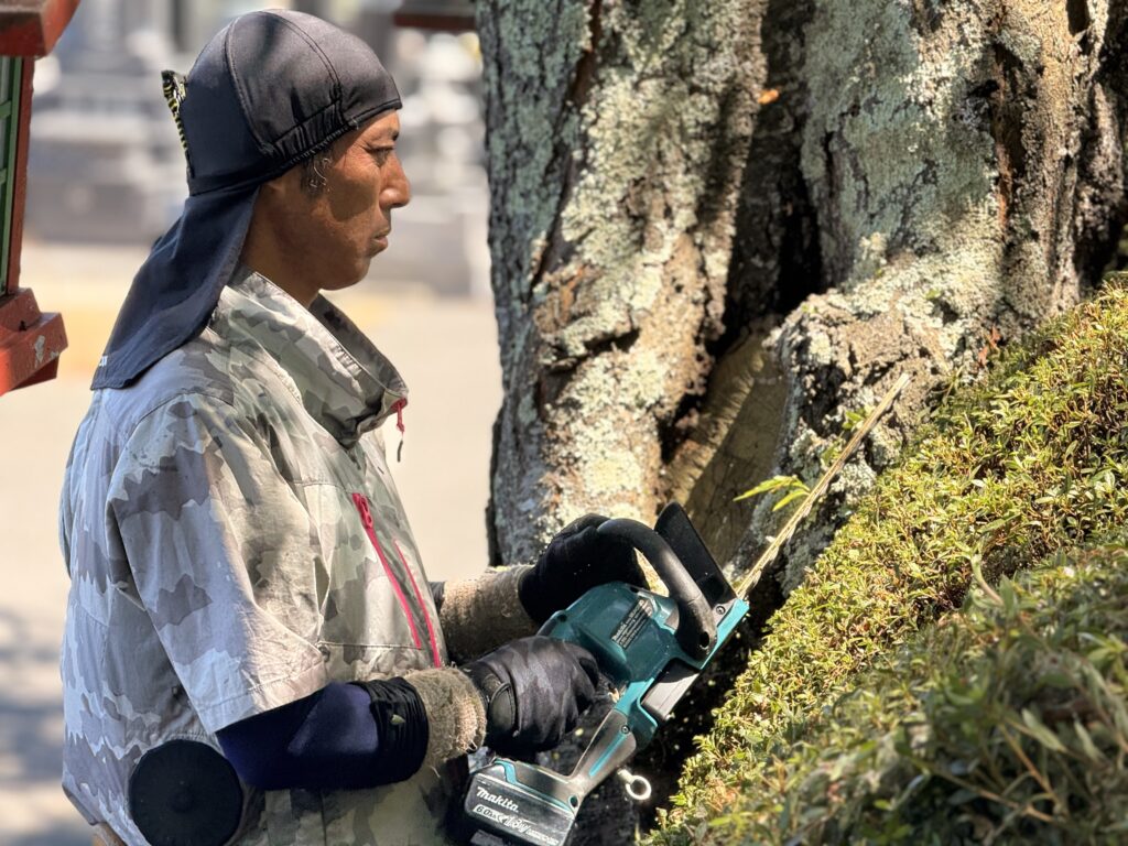 A. もともと自宅に庭があり、木をいじることに関心がありました。そんな時に求人を見つけ、「やってみたい」と思ったのがきっかけです。飲食業など全く違う仕事をしていましたが、思い切って挑戦しました。